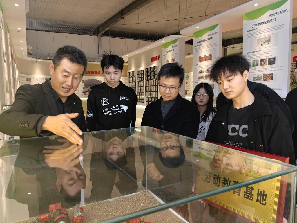 11月14日,数学与统计学院副院长戴磊、辅导员纪璐与学生们赴下邽镇绿盛农业科技有限责任公司进行学习参观并为劳动教育基地授牌。