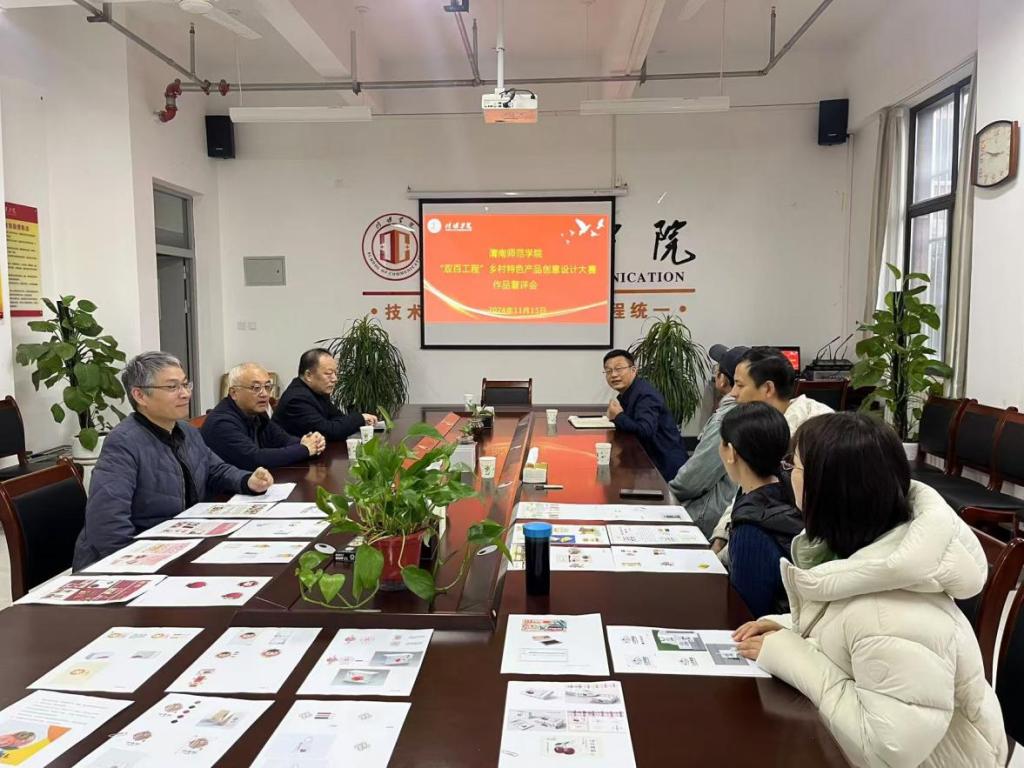 会上,曹熙斌详细介绍了大赛筹备过程,包括组织团队赴澄城县冯原镇开展“双百工程”结对帮扶调研,以及组织师生创作作品的情况。程昌华副教授通过屏幕和纸质设计稿,对前期作品评审情况进行了深入介绍。张小波对几件优秀作品进行了补充说明,张鸽舞介绍了学生创作作品过程和成果。经过评委评选,评委们从40余件初选作品中选拔出一等奖四件、二等奖八件,三等奖九件佳作。