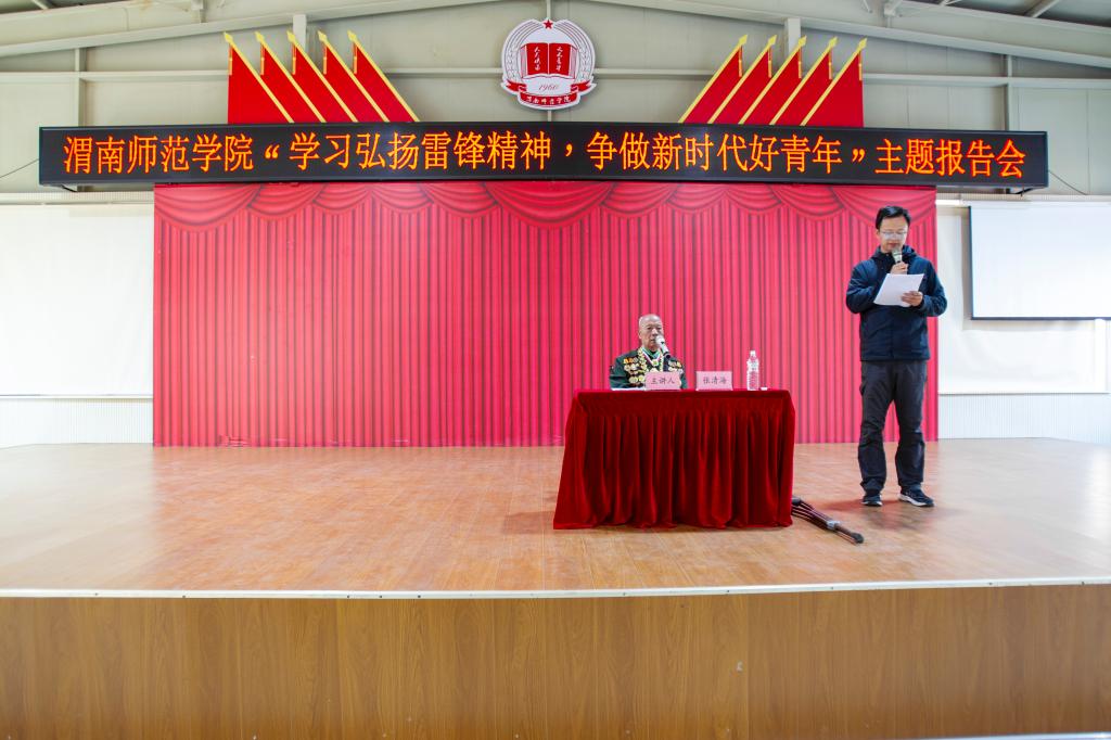 11月7日,best365邀请全国“两模”“五先”殊荣称号获得者张清海为师生作“弘扬雷锋精神 争做新时代好青年”主题报告。报告会由校团委副书记潘涛主持。