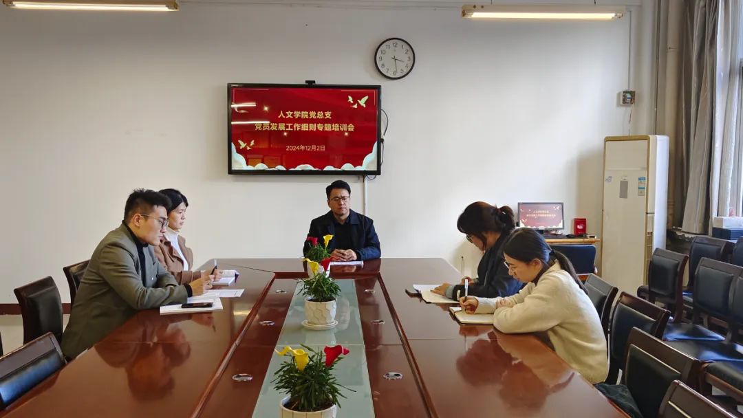 12月2日上午,人文学院党总支于博识楼1318会议室召开党员发展工作细则专题培训会。学生第一、第二党支部书记、支委参加会议,党总支副书记、副院长王昱主持培训会。