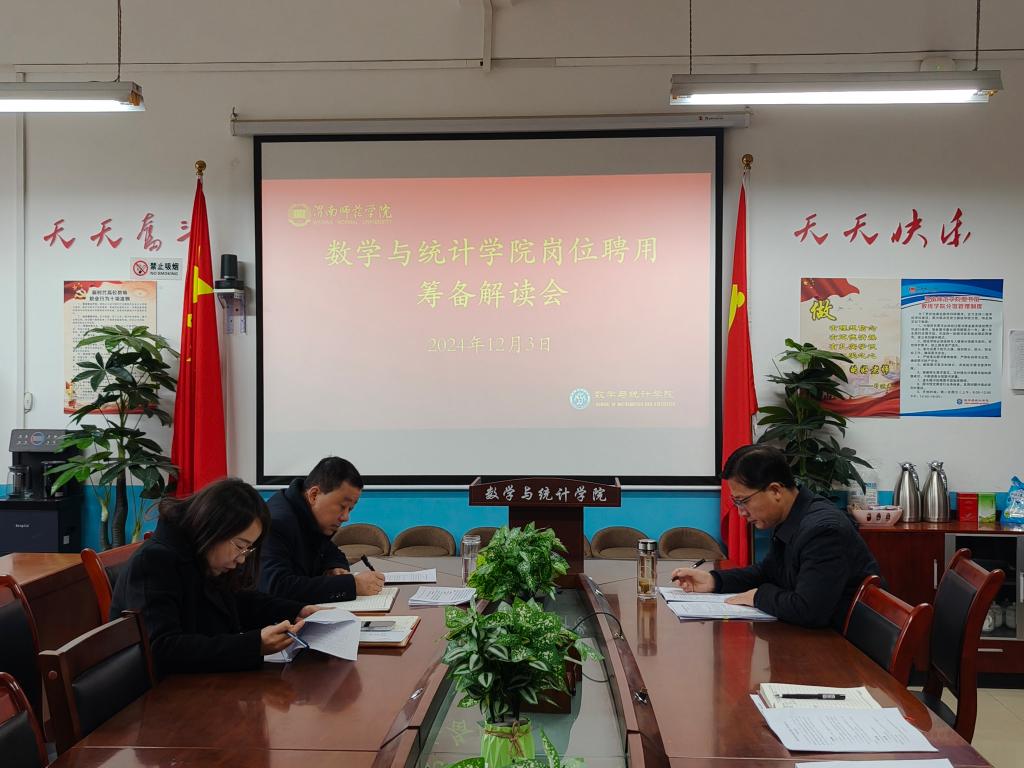 12月4日,数学与统计学院召开岗位聘用工作实施方案班子研讨解读会及全体教职工岗位聘用工作实施方案学习解读与宣传动员会。此次会议旨在深入解读best365中国官方网站岗位聘用工作实施方案(2024-2026),确保全体教职工能够充分理解并积极参与新一轮的岗位聘用工作。会议由院长陈斌主持,全体教职工参会。