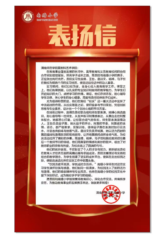 会议伊始,王争军为莫斯科艺术学院颁发了表扬信,表扬莫斯科艺术学院实习生在南塘小学90年校庆活动中作出的贡献和实习期间的突出表现。王菊霞为南塘小学优秀实习指导教师颁发荣誉证书,感谢老师们对实习生的悉心指导和帮助。