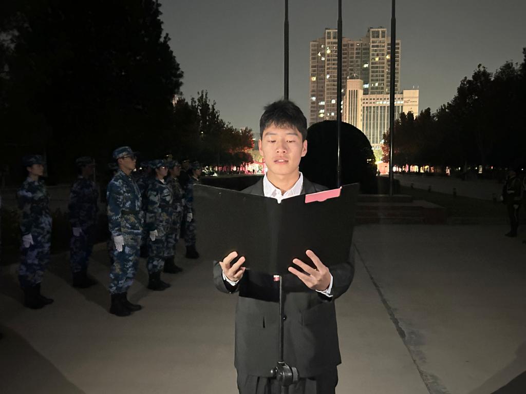 国歌奏响,师生目光炽热、庄严肃穆,五星红旗冉冉升起,爱国豪情与体育精神在此刻交融。