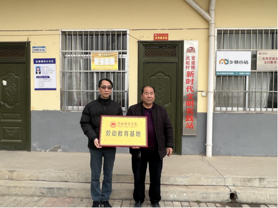 12月10日上午,马克思主义学院与临渭区官道镇武赵村举行劳动教育基地授牌仪式。临渭区官道镇纪委书记李卫辉、武赵村党支部书记刘新法,马克思主义学院院长张萍,副院长单剑锋,思政课教师张馨艺共同参加了本次授牌仪式。