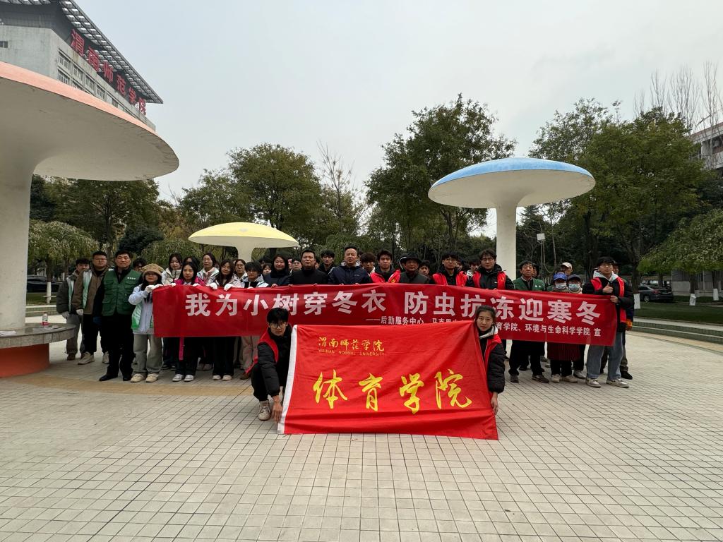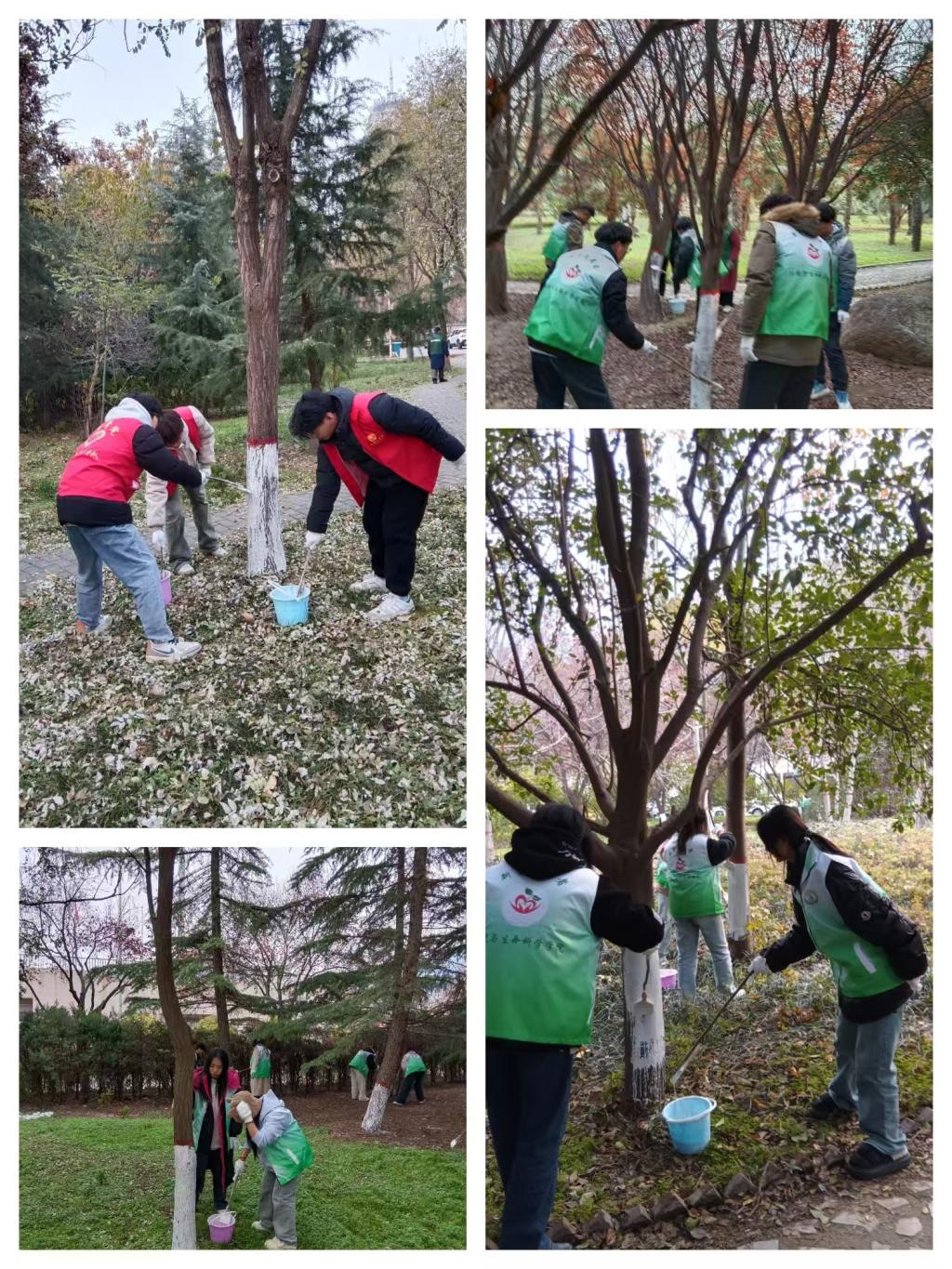 12月10日下午,后勤服务中心联合环境与生命科学学院、体育学院在朝阳校区开展以“我为小树穿冬衣,防虫抗冻迎寒冬”为主题的劳动教育实践活动。