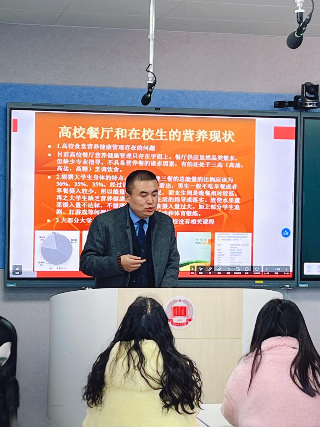 理论教学由中国烹饪大师、高级营养师、健康管理师、国家中餐烹调技师、陕西餐饮服务量化分级评定专家袁红武老师主讲,通过分析当前高校餐厅供餐现状、在校生的营养现状及两者之间的关系、存在的问题,向同学们传授健康饮食理念和方法;讲解了食材的选择处理、形状搭配、属性功能、烹饪顺序、安全卫生等基础常识,重点比对了学校食堂、饭店、外卖操作间在原料采购、存储、人员健康管理、制作流程、环境卫生、添加剂使用、行业监督等关键环节的差异,倡导大学生养成学校食堂就餐习惯。