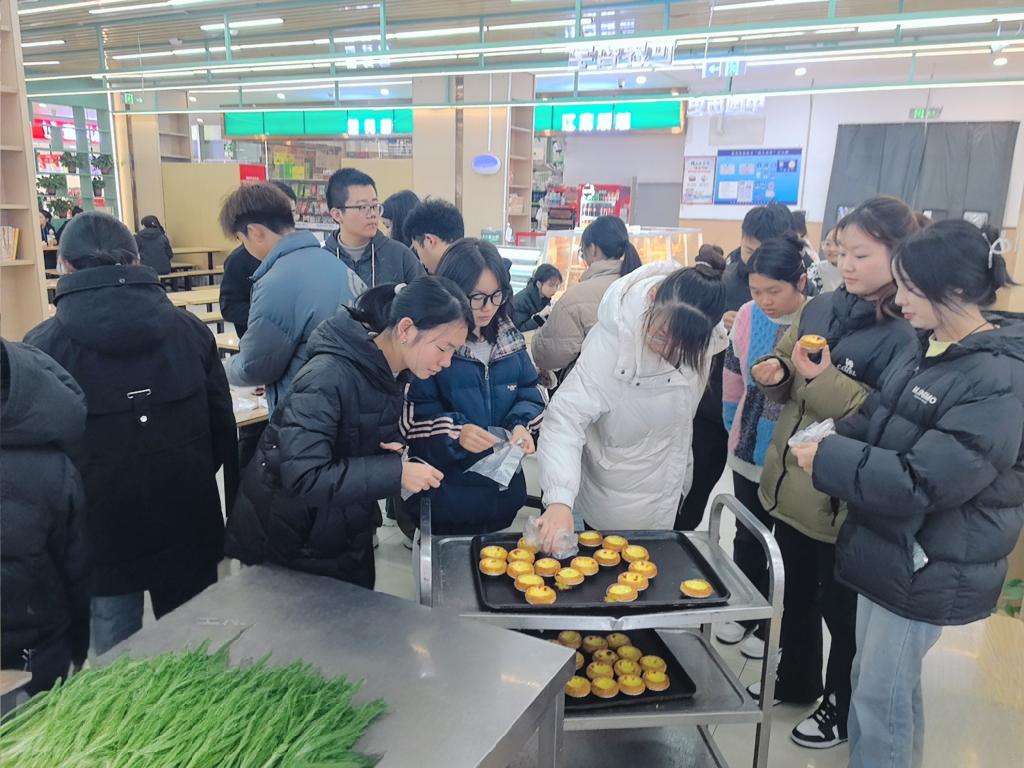 经过为期两天的学习,30名同学亲手体验了蛋挞、包子、饺子和炒菜的制作全过程,学会了面粉筛选、酵母发酵、团揉制塑形、烘烤装盘等,掌握了切菜、热锅、加油、炒制、调味、摆盘等工序技能。作品陆续出炉,全体学员纷纷与作品拍照留念,充分体验了烹饪乐趣,也感受到烹饪色香味饭菜的困难与挑战,进一步理解食堂操作人员的辛劳,激发了大学生尊重劳动人民,尊重劳动成果的职业认同感。