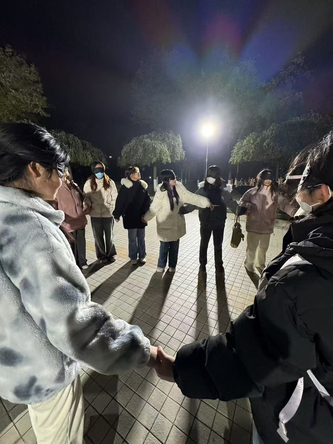 为进一步提升大学生心理健康水平,增强学院学生凝聚力,12月11日晚,教育科学学院2024级学生在草坪音乐广场开展了以“润心竹梦”——心灵奇遇,与爱同行为主题的团体活动。本次活动分“价值组合”和“盲人方阵”两个环节,同学们在活动中观察,学习和体验,缓解自身压力,放松自我,现场气氛活跃。活动结束,同学们交流互动,结识到更多朋友的同时,认识到团队合作的重要性,传递了积极向上的生活态度。