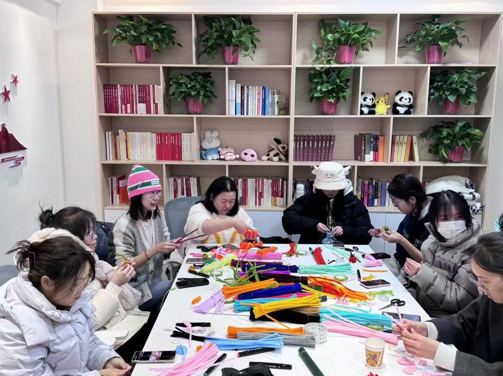 为了引导师生关注自身内心世界,舒缓学习与工作压力,12月12日下午,教育科学学院于学校“一站式”学生社区服务中心举办“润心竹梦”——“妙手生花,‘扭’转乾坤”·扭扭棒设计活动。本次活动分“解忧调色盘”“DIY扭扭棒创作”两个环节,同学们拿起画笔,在卡片上精心绘制出属于自己的“小时光”并分享;老师和同学们在舒缓的音乐声中充分发挥想象力和动手能力,面对五颜六色的扭扭棒,或独立构思,或团队协作,将一根根普通的扭扭棒变成了一件件精美的艺术品,同时相互分享与交流。此次“润心竹梦”——“妙手生花,‘扭’转乾坤”·扭扭棒设计活动,将心理健康教育与创意手工巧妙结合,以轻松愉悦的方式引导同学们关注内心世界,释放压力,收获快乐与成长。