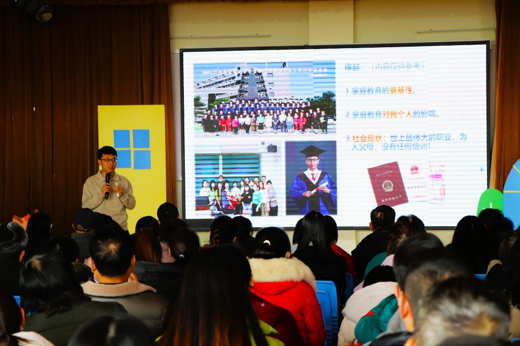 12月20日下午,教育科学学院学前教育专业教师孙少康赴渭南市蒲城县第二幼儿园开展题为《家庭永远是孩子最坚强的后盾》的主题讲座。全体教师与幼儿家长共200余人参与了此次活动。讲座中,孙少康结合自己的成长经历,凭借其丰富的教育经验和扎实的专业知识,深入浅出地从“我们的家庭教育是什么样的、好的家庭教育者是什么样的、家庭教育的含义、任务与要求及父母、幼儿园教师如何做”四方面进行了分享。