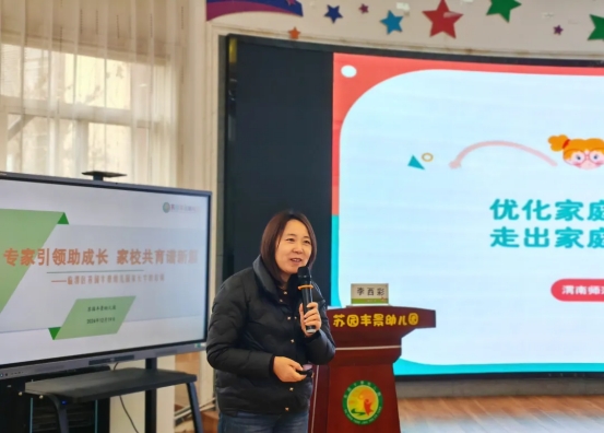 12月19日,教育科学学院院长李西彩教授赴渭南苏园丰景幼儿园为60多位家长开展了《优化家庭教育模式 走出家庭教育误区》专题讲座,李西彩以问题导入、引导家长明晰家庭教育对幼儿良好生活习惯、个性品质、社会适应能力的形成和发展至关重要。交流对话环节,李院长和家长们就孩子在园表现,日常行为以及家庭教育中遇到的困惑等问题进行了深入的探析。此次活动不仅使家长认识到家庭教育的重要性,也进一步促进了家园合作。