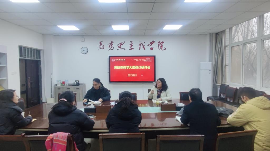 12月24日上午,马克思主义学院召开思政课教学大纲修订研讨会,教学副院长单剑峰和6门思政课教研室主任参加会议,院长张萍主持会议。