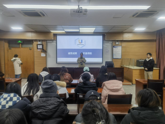 12月23日上午,莫斯科艺术学院在逸夫楼S617教室举办渭南优你可安家校外托管服务有限公司招聘宣讲会,会议由辅导员吴松林主持,2025届学前教育专业毕业生参会。