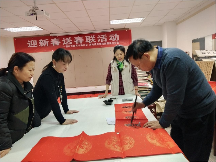 12月26日下午,附属单位分会和渭南市书画教育协会联合举办“迎新春送春联”活动。党委副书记汪勇亲临现场,把温暖和祝福送至附属分会每一位职工。