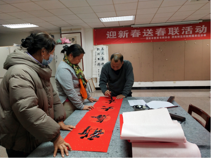 虽是隆冬季节,活动现场却是红红火火,一副副春联、一张张“福”字已经把新年的祝福和春的温暖送至广大教职工心间。大家不仅现场领略了书法家们的潇洒挥毫的风采,欣赏着一副副精美的书法作品,而且也领到了心仪的春联,传统文化氛围满满当当。写的、领的,人人脸上都透着喜气祥和、洋溢着幸福的笑容。(通讯员 张春丽 黄晓琛 审核人 李维喆)