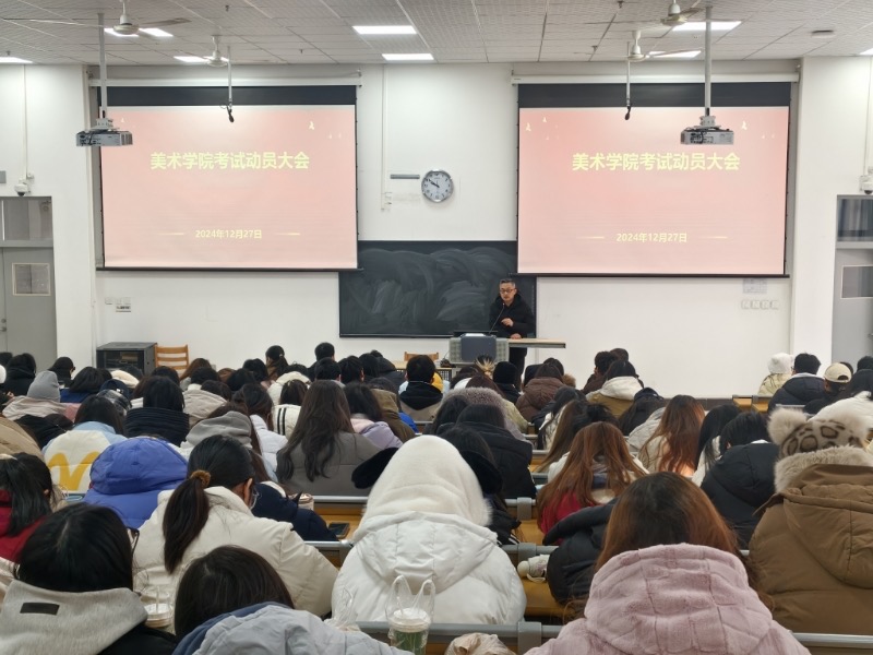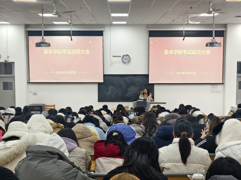12月27日,美术学院召开考试动员大会。此次大会旨在严肃考风考纪,激发同学们的学习动力,帮助同学们端正学习态度。美术学院副院长石海彬、石洁,全体辅导员及2022级、2023级、2024级全体学生参加大会。大会由美术学院党总支副书记雷毅主持。