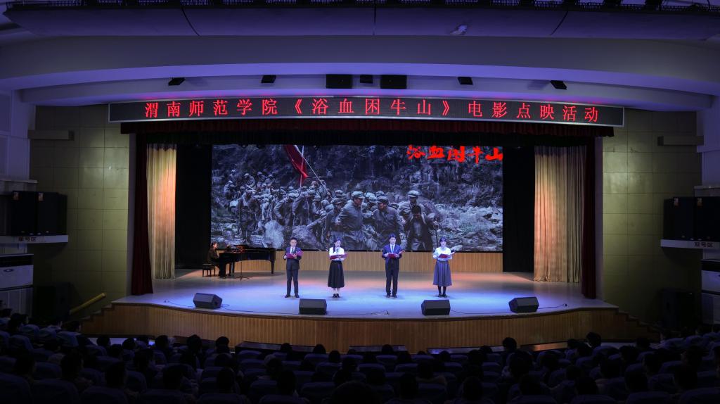 点映开始前,我院学工办副主任孟子祥、辅导员周雨坤、汉语言文学专业学生刘宇立、高文怡为观影师生深情朗诵我院党总支书记张晶的原创诗歌《信仰》。“石阡有座山,伫立在长长的黑滩河畔”“我要怀着崇敬的心去贵州,我要去石阡开启我的朝圣之旅”“这就是困牛山精神,这就是我们的军魂”“红军壮举震宇寰,红军精神代代传”。师生们时而娓娓道来时而慷慨激昂的朗诵让大家在短短的几分钟内重温困牛山红军战士“宁死不做俘虏,宁死不伤百姓”毅然集体跳崖的千古壮举。