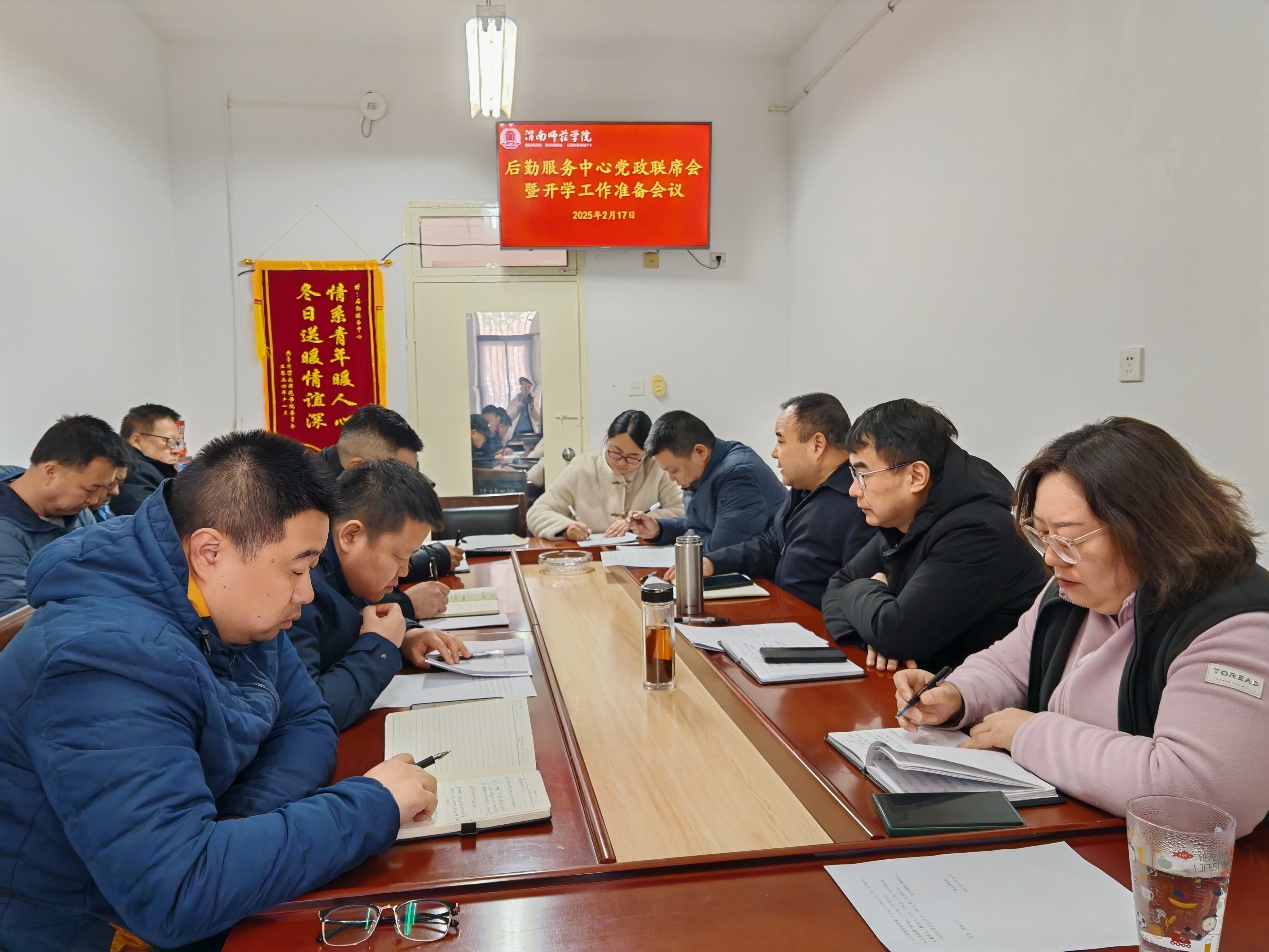 2月17日,后勤服务中心召开党政联席会暨开学工作准备会。会议由党总支书记席景奇主持,副科级以上干部参会。