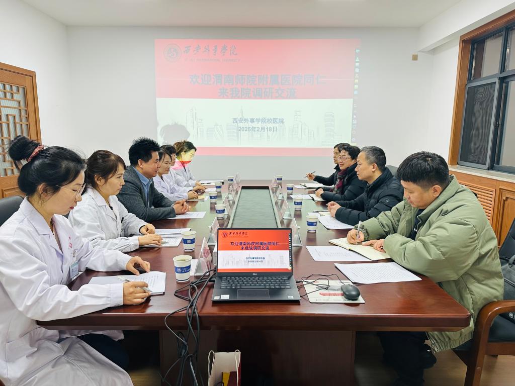 2月18日上午,附属医院党支部书记王雅蓉、院长段楚雷、副院长王新英、办公室主任王鹏一行4人赴西安外事学院校医院交流调研。此次调研旨在借鉴西安外事学院在医院运营发展、校园公共卫生和传染病防控、大学生医保管理及产学研结合等方面的先进经验,为办好学校2025年十大民生实事,推动best365附属医院高质量发展,奠定良好基础。