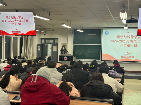 2月20日,数学与统计学院围绕教育教学审核评估应知应会学习及学风建设开展了内容丰富的“开学第一课”主题班会,全体学生参加。