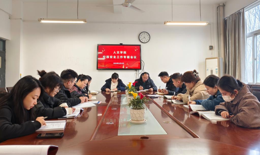 3月3日下午,人文学院在博识楼1318会议室召开校园安全工作专题会议。全体行政人员参加了此次会议,党总支书记张晶主持会议。
