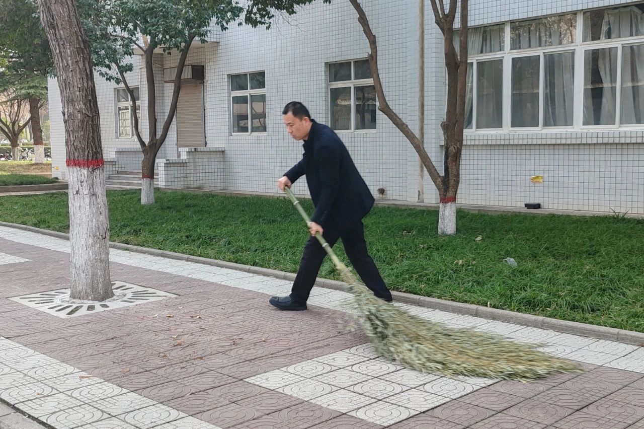 在全体人员的不懈努力下,校园内的落叶和垃圾得到了重点清理,校园卫生实现了无死角。