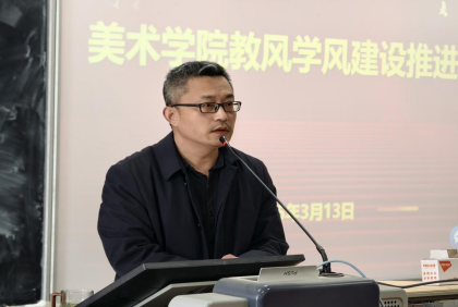 3月13日,美术学院召开教风学风建设推进会,副院长石海彬、党总支副书记雷毅、副院长石洁、全体辅导员及全体班干部参加此次会议。推进会旨在进一步加强美术学院教风学风建设,提升人才培养质量,营造良好的教育教学氛围。