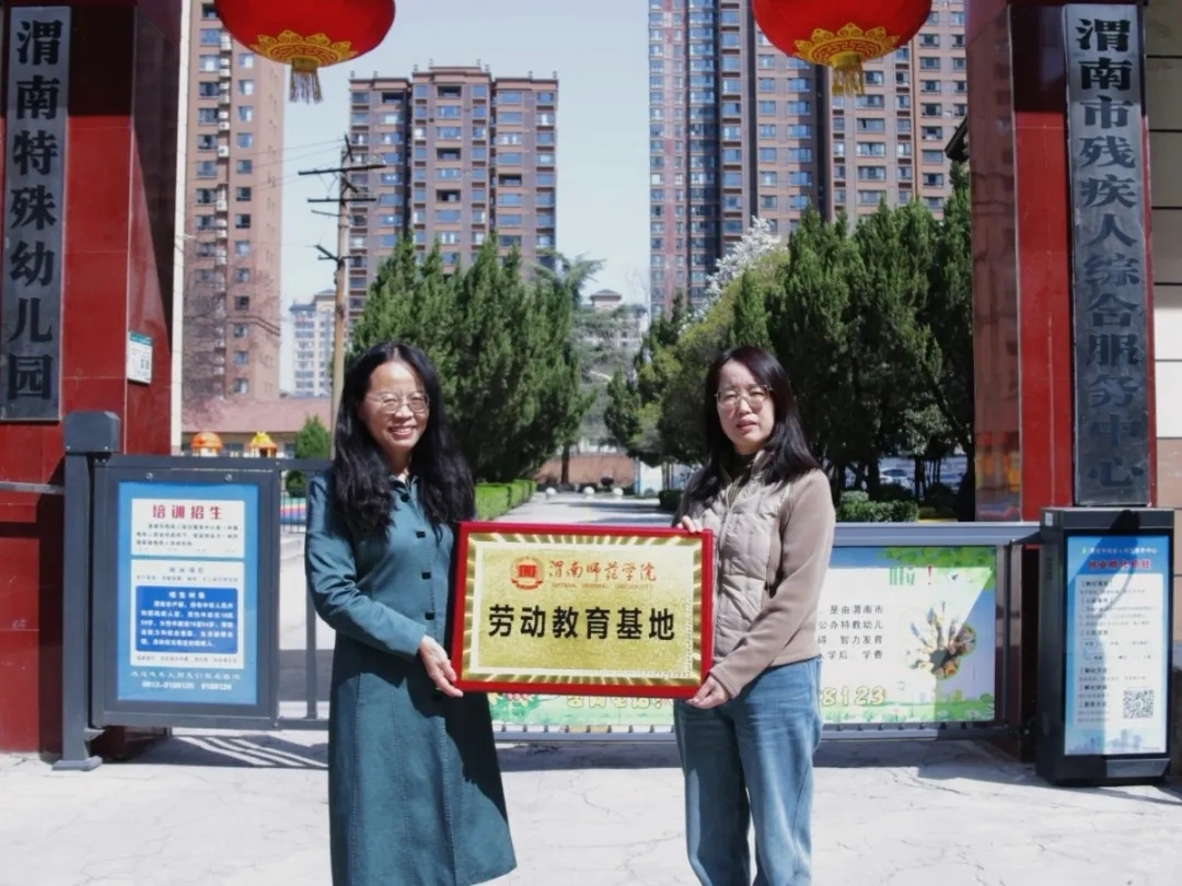 李海荣为渭南特殊幼儿园进行大学生劳动教育基地授牌。她表示,外国语学院未来将持续关注特殊儿童的教育与发展,希望通过此次合作,进一步深化校地合作,打造特色劳动教育平台。园长曹小苗希望双方达成长期合作,充分发挥外国语学院语言专业力量,为专业化志愿服务赋能。