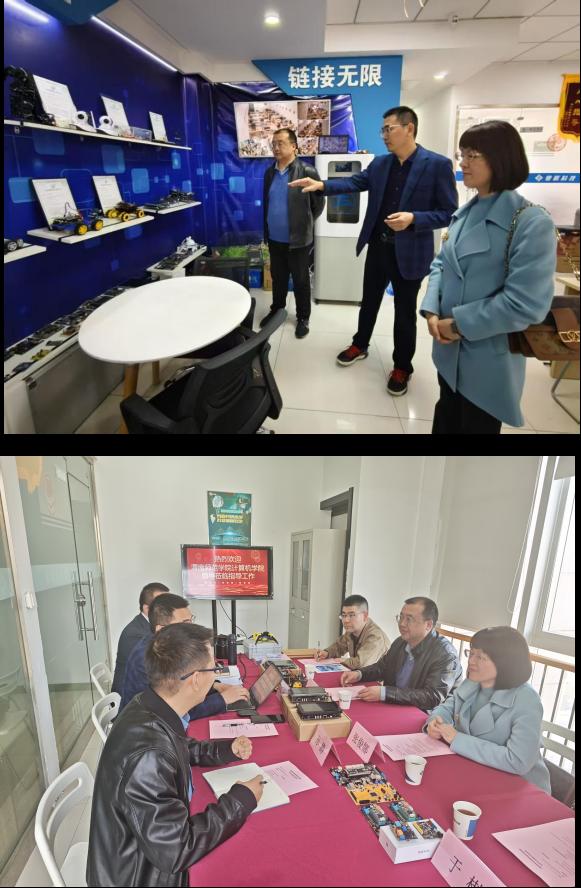 在西安粤嵌信息科技有限公司,学院一行参观了企业的研发中心和产品展示区,并与西安粤嵌信息科技有限公司总经理王乐忠、教学总监孙腾、校企合作部经理王玺进行了座谈。王乐忠详细介绍了公司发展状况。院企双方就专业建设、人才培养质量提升、实验室建设、产学研等方面进行了深入交流。学院希望通过此次走访调研,能够进一步加深与粤嵌公司的合作,共同探索校企合作的新模式、新机制,为学院学生提供更多实习就业机会,同时也为企业输送更多高素质、高技能的计算机专业人才。