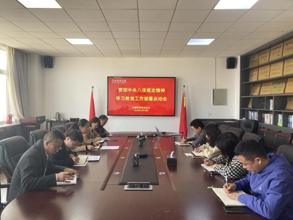 3月24日,计算机学院党总支在同心楼5406会议室召开深入贯彻中央八项规定精神学习教育部署启动会。学院处科级干部、师生支部书记参会。会议由党总支书记武楠主持。