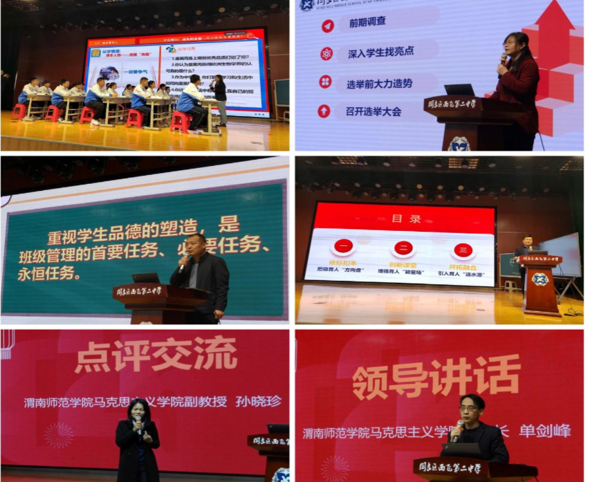 西安市田金伟班主任工作室主持人进行《班级管理经验分享》的讲座。田老师以“班级文化建设”为主题,分享如何将品德教育融入日常班级管理,在点滴细节中培根铸魂,传递德育工作的温暖与智慧。工作室核心成员林娜老师进行《“培”好干部细管理 “陪”好干部促成长》的班主任工作案例分享。