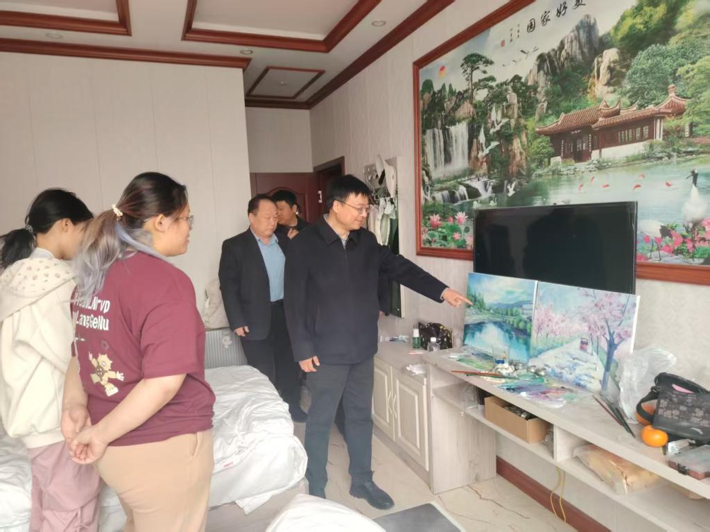 常青林走访了学生宿舍、写生现场和用餐地,仔细检查实习环境和卫生,了解实习进度和任务完成情况。他同指导教师一起,查看学生作品,对同学们取得的成绩和优秀作品给予肯定,鼓励同学们要乐于吃苦,勇于实践,认真创作,争取成绩,不断提升专业能力。他还强调,师生在外实习,要树牢安全意识,做细做实各项安全防护措施,有效应对极端天气变化等突发事件。师生们对学校领导的关心和指导表示感谢。