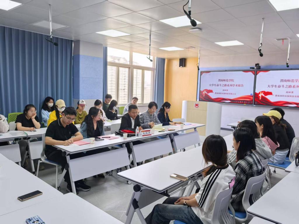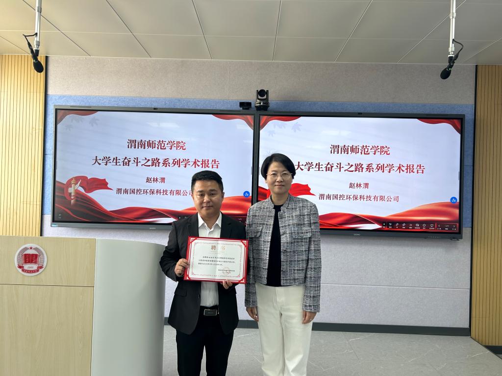 4月15日,渭南国控环保科技有限公司总经理赵林渭受邀来校作大学生奋斗之路系列学术报告交流会。会议由经济与管理学院院长袁梁主持。