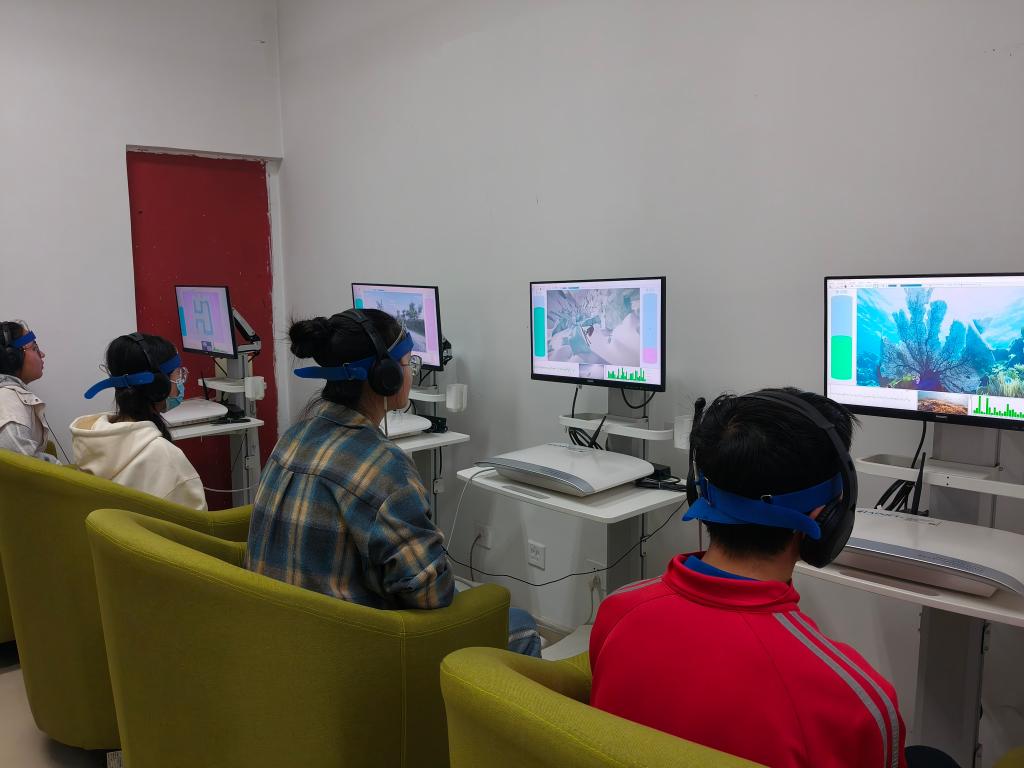 在科室工作人员的引导下,师生们走进医院健康管理中心,依次参观了心理咨询门诊、厌学门诊、团体心理治疗室、团体沙盘治疗室、心理测评室、精神心理科门诊、门诊心理测评室、个体沙盘心理治疗室及生物反馈治疗室。同学们不仅亲身体验了生物反馈治疗,还深入了解了各类心理治疗技术的操作流程与实际应用。