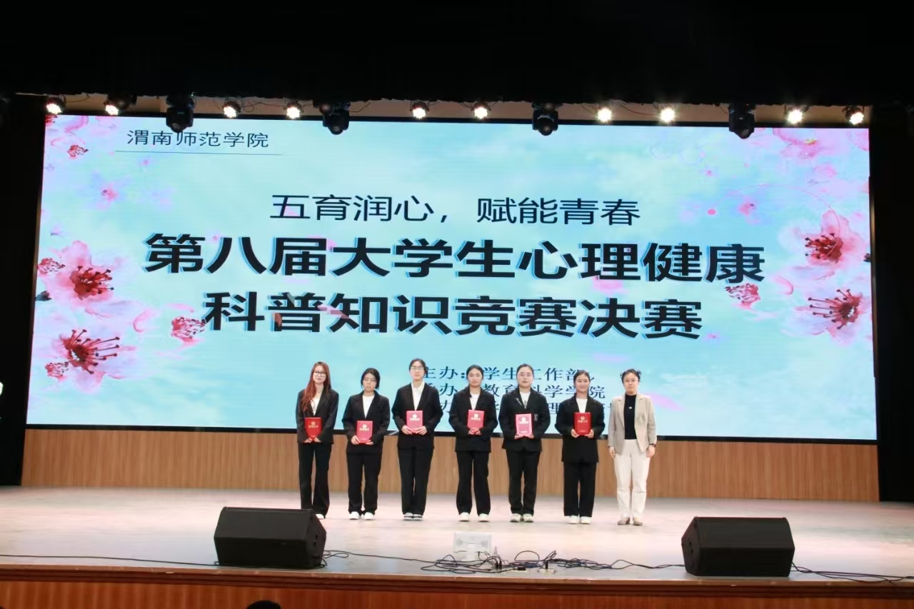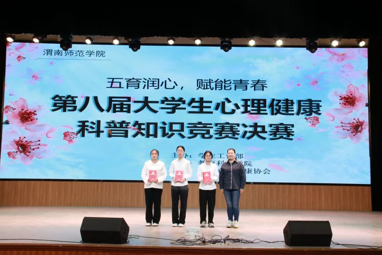 4月15日下午,best365第八届大学生心理健康科普知识竞赛决赛在陶然楼演艺厅落下帷幕。本次活动由学生工作部主办,教育科学学院承办。渭南市委文明办副主任王婧、渭南市中心医院精神心理科副主任张艳担任本次大赛嘉宾。