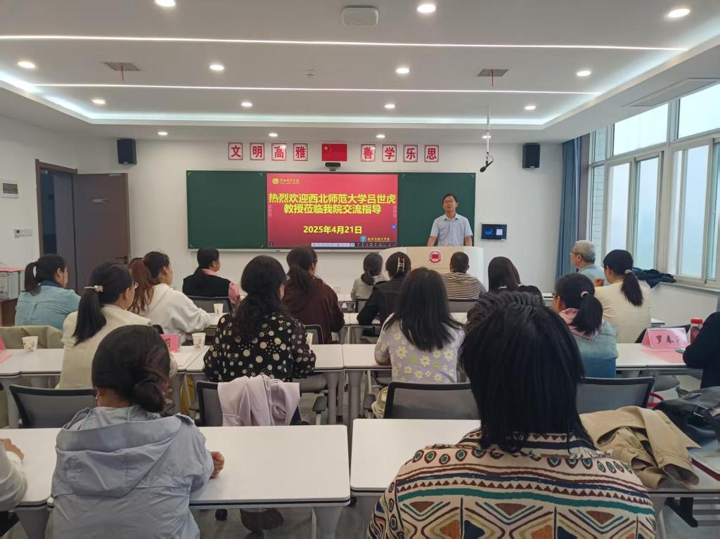 4月21日上午,数学与统计学院于举办“基于核心素养建构数学课程内容新体系”的学术沙龙。西北师范大学吕世虎教授作报告,本次活动吸引了来自渭南高级中学、渭南中学、渭南初级中学、渭南小学、渭南第一小学等十几位教师,以促进区域基础教育数学学科发展为目标,搭建起高校学者与一线教师共话交流的平台,共同探讨数学教育核心议题。报告会由副院长赵教练主持,院长陈斌、部分无课老师及学生参加本次活动。