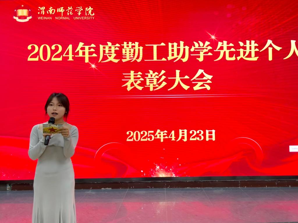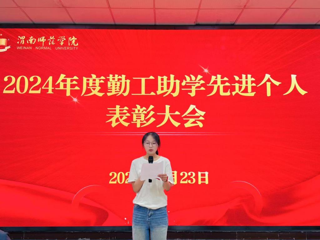 4月23日,学校举办2024年度勤工助学先进个人表彰大会。学工部副部长马耀斌、学生资助管理中心主任张小苗、受表彰学生及勤工助学学生代表参会,活动由俄语231班朱佳吟同学主持。