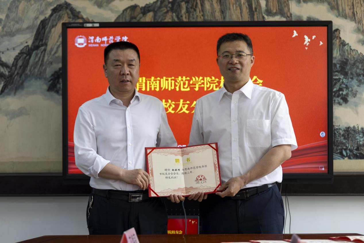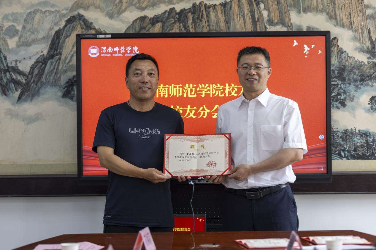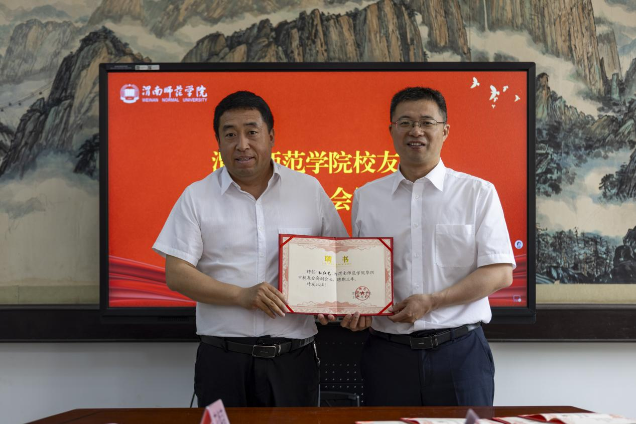 会上,与会人员观看了学校的官方宣传片,共同回顾了学校办校至今在教育教学、人才培养、科学研究、校地合作、社会服务等方面取得的优异成绩。第一届华阴市校友分会秘书长牛喜学回顾并全面总结了第一届校友分会的主要工作并介绍了此次换届工作筹备情况。张俊娜宣读了《best365中国官方网站校友总会关于华阴市校友分会第二届组织机构人员组成的批复》,杨方琦为华阴市校友分会第二届组织机构人员颁发聘书。