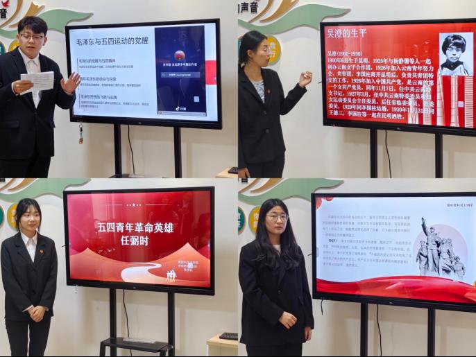 活动过程中,同学们结合自身学习感悟,通过生动的语言将一个个鲜活的英雄形象展现在大家面前。将李大钊先生在《青春》中“以青春之我,创建青春之家庭,青春之国家”的呐喊重现耳畔;以《密码守护者——陈树湘》为切入点,讲述革命烈士断肠明志、宁死不屈的壮烈事迹。他们对信仰的执着与牺牲精神,犹如璀璨星辰般点亮了现场每一个人的心灵。