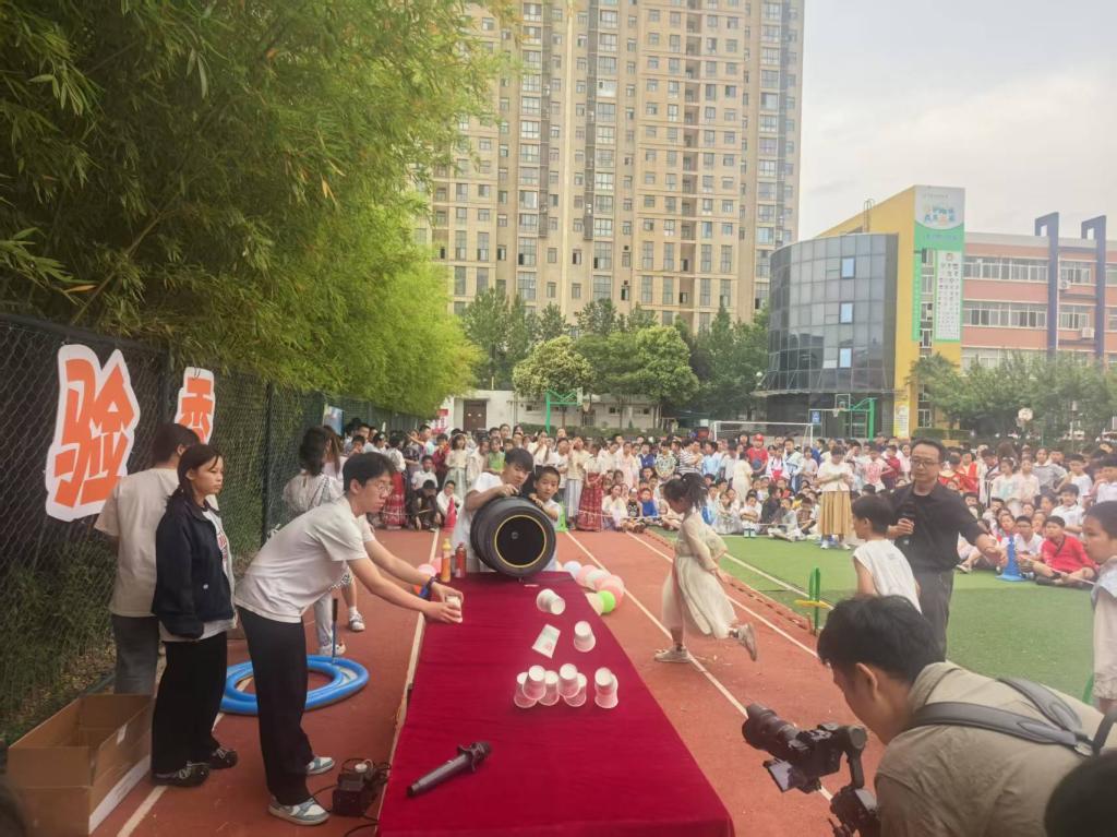 活动以“体验科学魅力”为主题,精心设计了十个引人入胜的实验项目。当老师手掌瞬间燃起火焰却又安然无恙的“火焰掌”亮相时,现场惊呼声此起彼伏;威力十足的“空气大炮”发射出肉眼可见的空气涡环,精准击倒目标纸杯,引得孩子们跃跃欲试;自制“水火箭”伴随着气压的释放一飞冲天,更是将全场气氛推向高潮。每一个实验都巧妙地将课本上的物理原理转化为直观、震撼的奇妙现象,让孩子们在惊叹中触摸科学的神奇脉搏。
