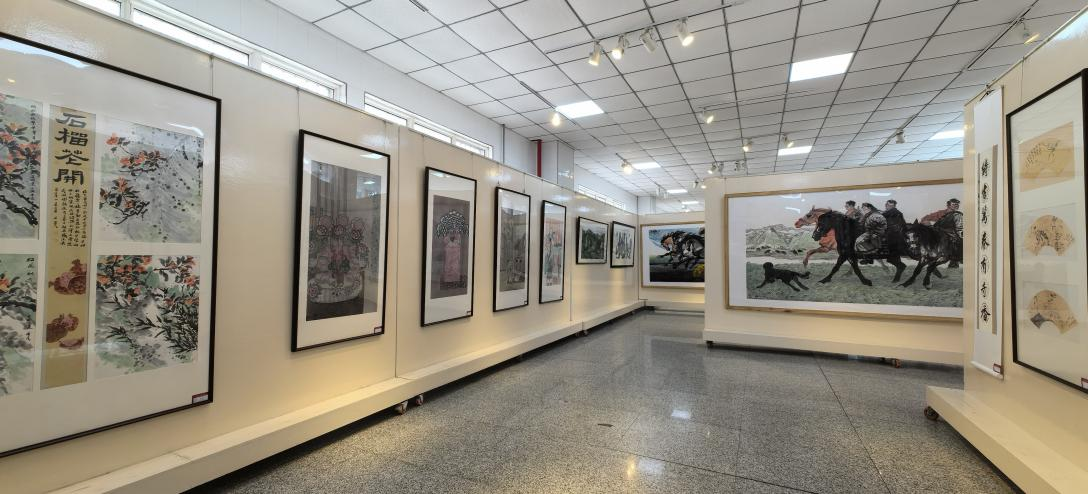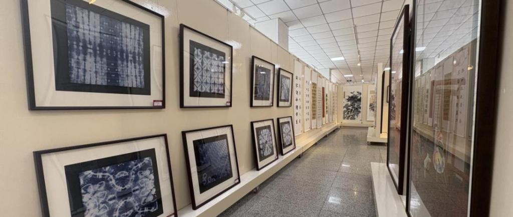 据悉,展厅以课程思政与专业教学深度融合的学术理念为指导,设置四个专题区域,通过“大主题、小专题”的策展逻辑,以多维艺术语言构建起理论与实践交织、传统与现代对话的沉浸式育人场域,让观者于丹青墨韵间感悟课程思政与专业教学同频共振的深层内涵。