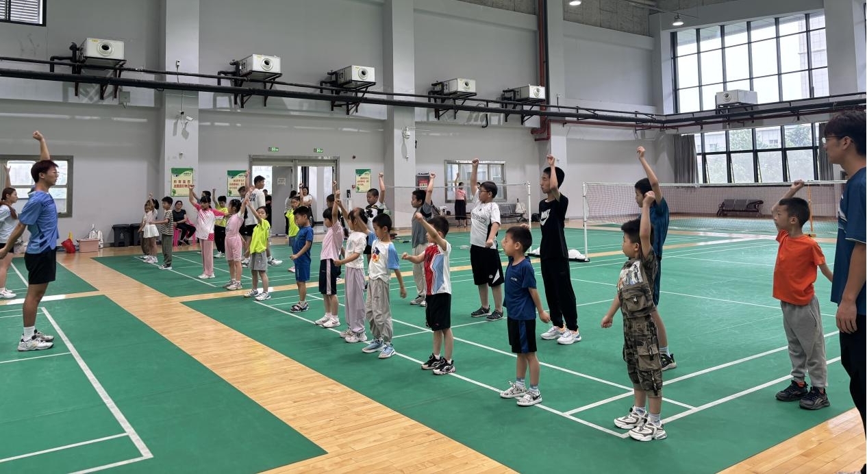 为落实全民健身战略,关爱教职工及下一代身心健康,体育学院充分发挥专业师资与场地优势,于6月7日起面向全校教职工及子女免费开设篮球、足球、羽毛球、乒乓球、网球、少儿体操、射箭及中考体育专项等丰富课程。首日训练现场气氛热烈:篮球场上孩子们专注运球,羽毛球馆里学生挥拍有力,射箭场新手们认真学习动作要领,还有足球、网球、体操、乒乓球;专业教练团队耐心指导,确保活动安全有趣。