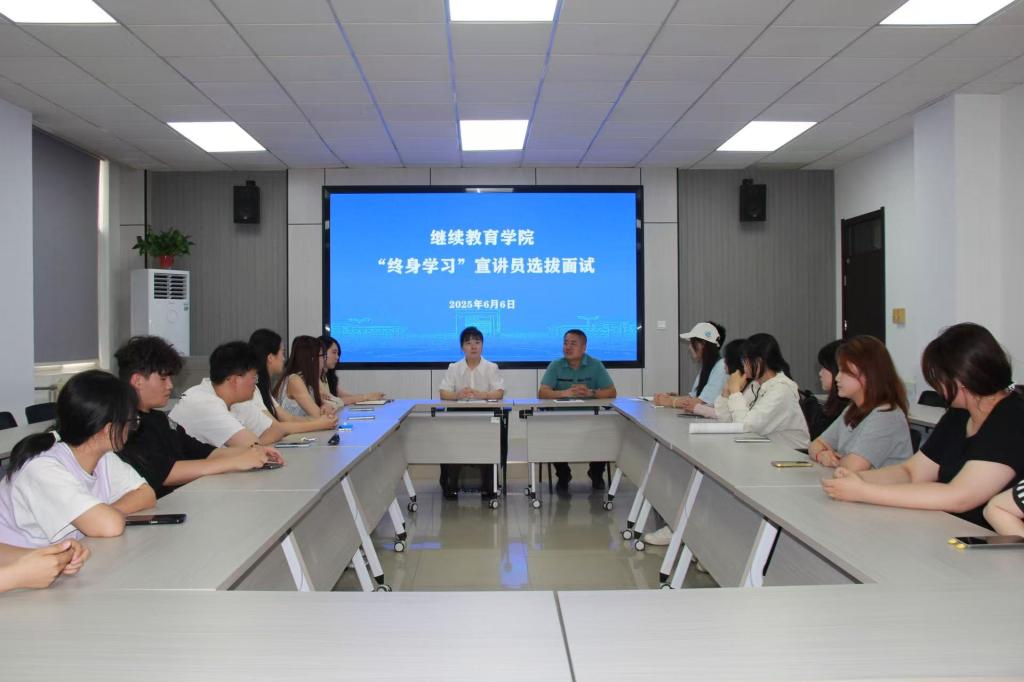 6月6日下午,继续教育学院成功举办“终身学习宣讲团”宣讲员选拔活动。本次活动吸引了来自各二级学院的20余名优秀学子踊跃参与。包祎洁、刘罗扬、曾莹三位老师担任评委,该院直属党支部书记张晶、副院长苟鹏军出席活动。