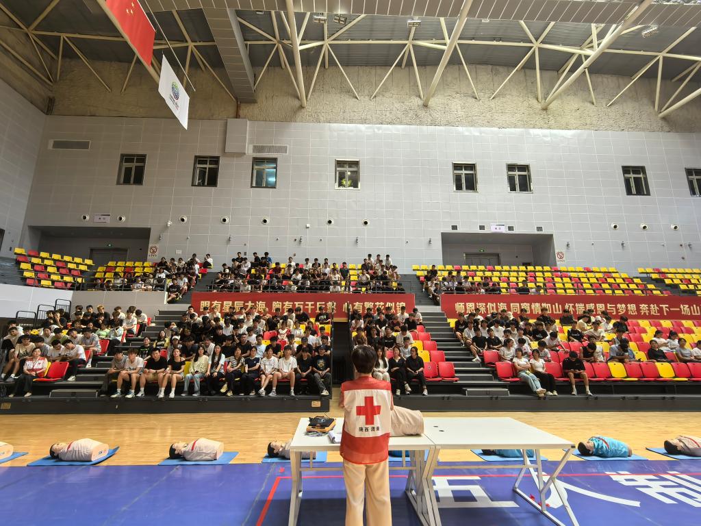 6月24日下午,由体育学院党总支、附属医院联合渭南市红十字会主办的“应急救护走进学院”系列活动在云帆体育馆拉开帷幕。体育学院党总支书记郭音、办公室主任王斌,附属医院办公室主任王鹏出席活动,体育学院300余名师生参与本次急救技能培训。