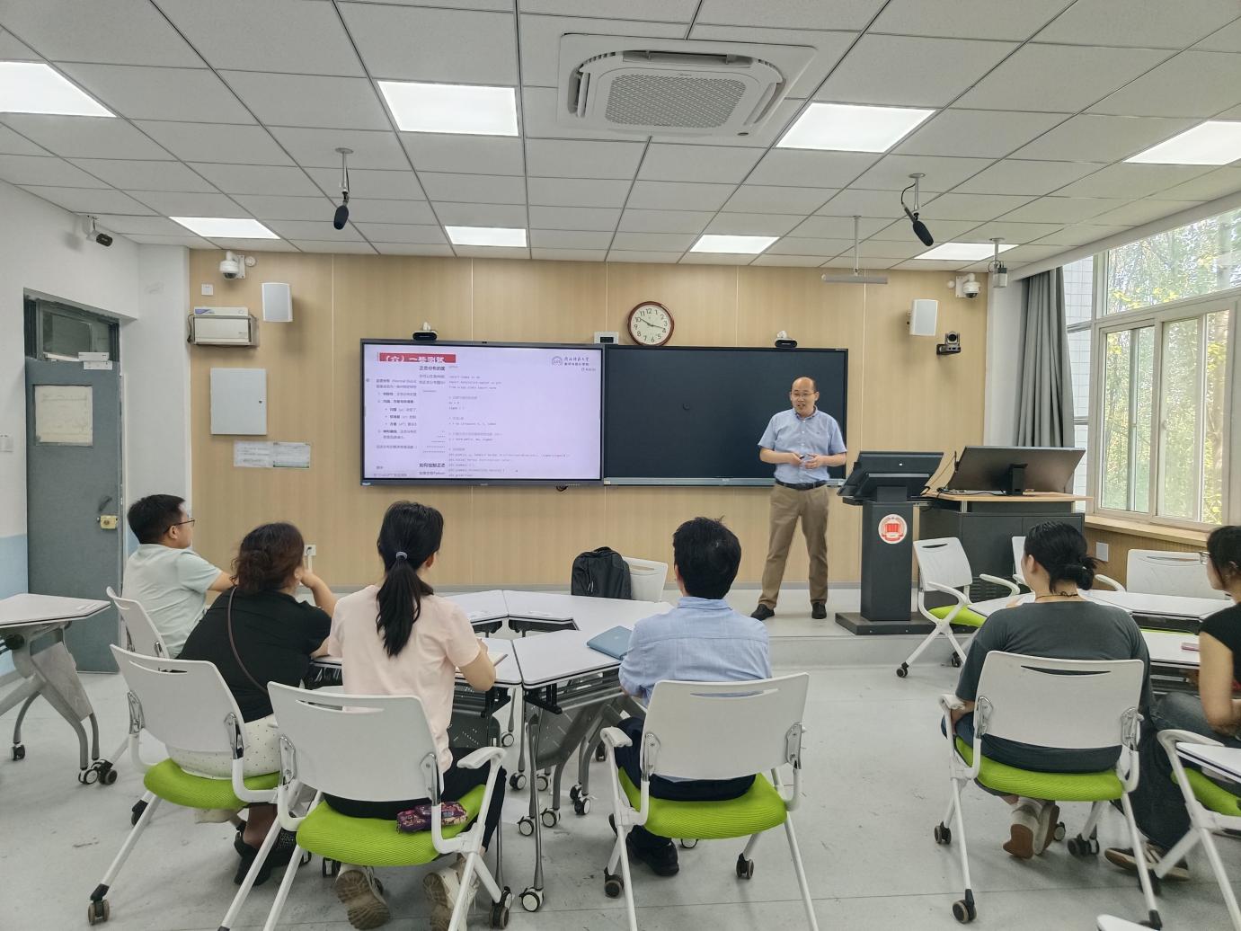 6月26日上午,数学与统计学院在知新楼2317教室举办了一场极具前瞻性与创新性的学术盛宴。学院特邀陕西师范大学数学与统计学院教学院长周红军教授带来《AI赋能<概率论与数理统计>课程与教材建设的探索与实践》的专题报告,全院教师和统计学专业学生聆听了本次报告,报告会由教学院长戴磊教授主持。