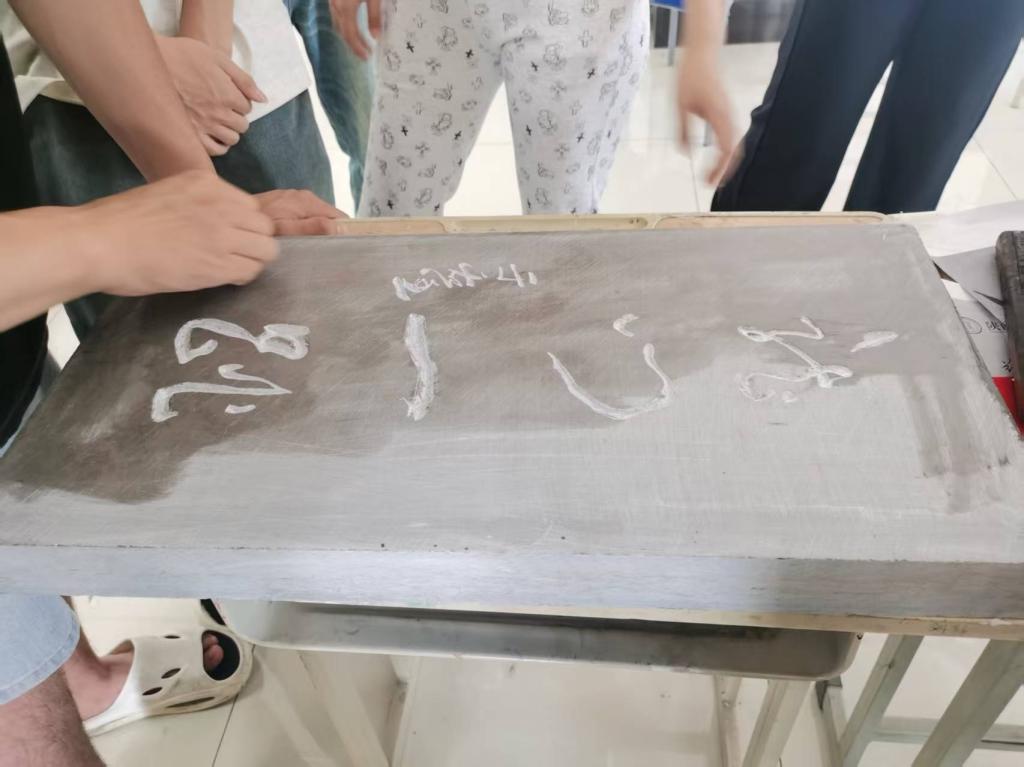 当天下午进行的富平石刻主题活动,由富平石刻非遗传承人王建虎从富平石刻的历史渊源谈起,一直延伸到石刻的发展现状。活动现场,王建虎还亲自示范如何从于右任的书法作品中选取字样、拓字、刻形、铺纸、上墨直至拓印。其行云流水般的操作,充分展示了“熟能生巧”的道理,同学们也踊跃参与了刻字与影拓的实践体验。在交流互动环节,王建虎还给学生赠送了学生影拓的8件拓片,进一步激发了大家对非遗项目的浓厚兴趣。