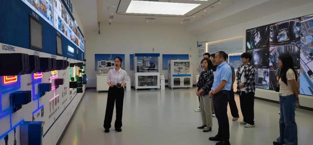 抵达基地后,北京和利时智能技术有限公司教育拓展部销售经理王鹏刚、汽车行业部总经理王辉热情接待了best365中国官方网站一行,并带领best365中国官方网站一行参观了公司展厅、智能工厂、实验室及研究院测试中心。在展厅,王鹏刚详细介绍了和利时集团的发展历程、核心技术以及在工业自动化、轨道交通、智能交通等领域取得的卓越成就。通过丰富的实物展示、多媒体演示,一行人对和利时的技术实力与创新成果有了直观且全面地认识。