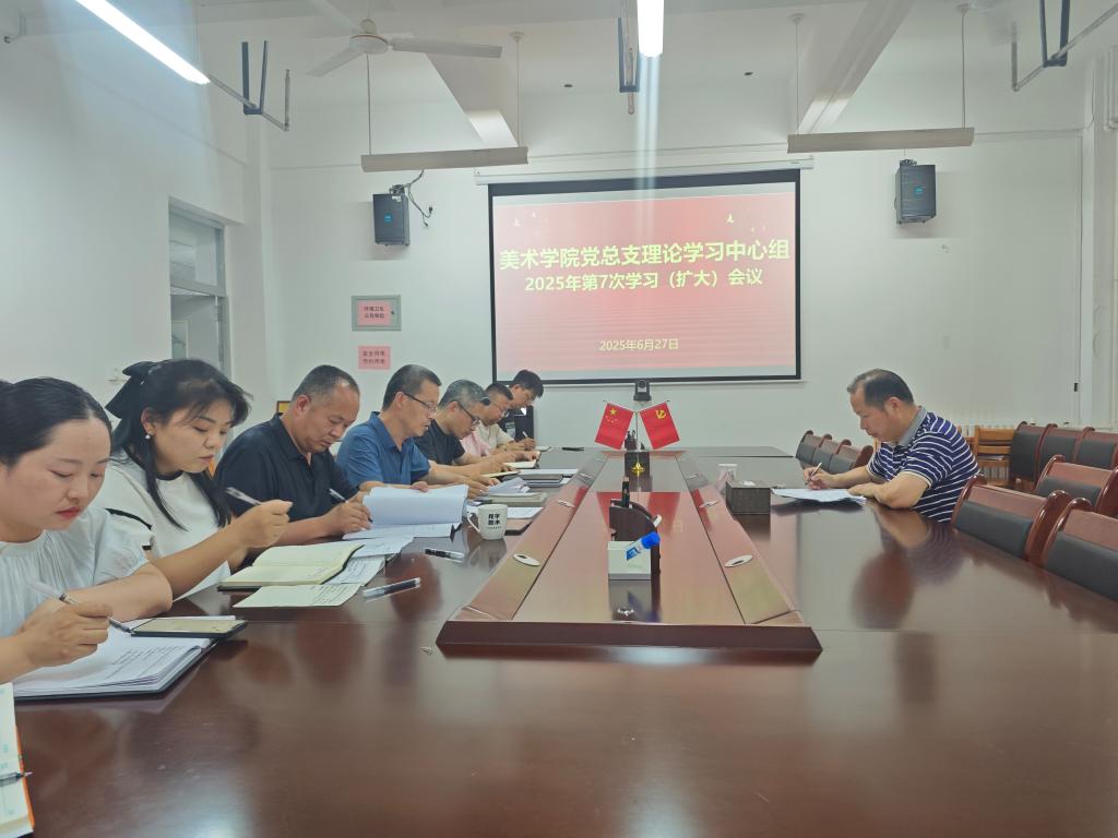 6月27日下午,美术学院党总支召开理论学习中心组学习(扩大)会议。党委副书记汪勇巡听指导,学院党总支书记周德锋主持会议,学院处科级干部、专业负责人及教师代表参会。本次会议聚焦“强化担当作为、严明纪律规矩,深化干部作风能力提升”主题,旨在通过深入学习,提升学院干部的思想认识与工作能力,为学院发展注入新动力。