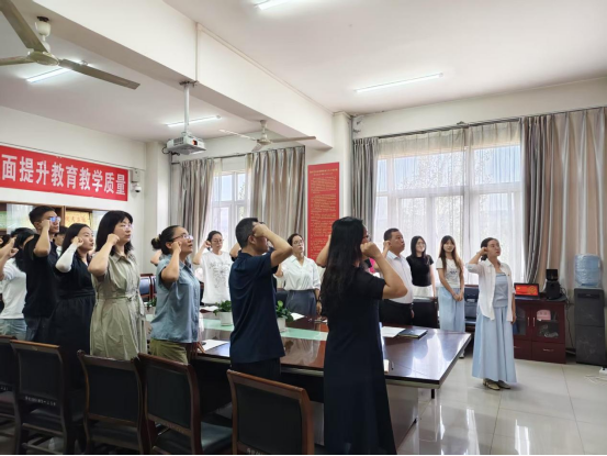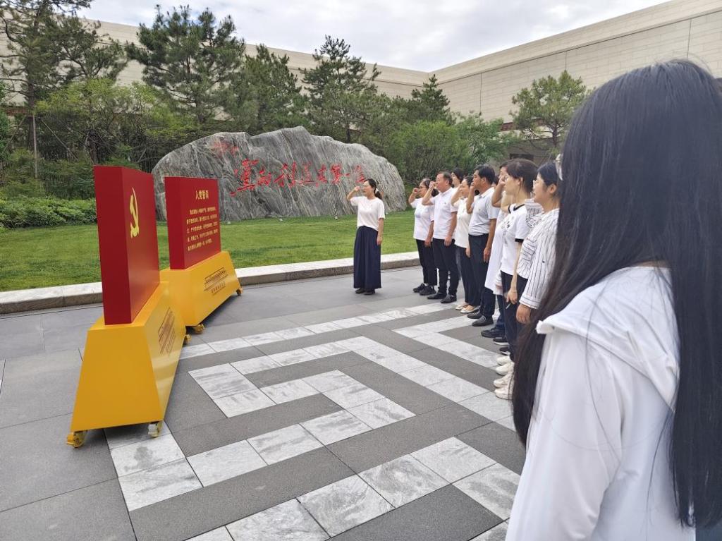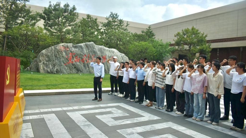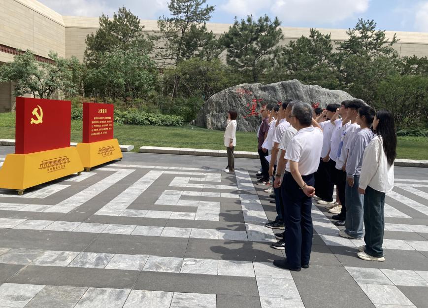 参观结束后,全体师生在纪念馆广场前有序列队,面向鲜红的中国共产党党旗庄严宣誓。在院长秦玉伟的领誓下,全体党员高举右拳,字字铿锵,以坚定有力的誓言重温对党忠诚的庄严承诺,铿锵之声激荡着每一位党员的心灵,将对党和人民的无限忠诚化作奋勇前行的动力。