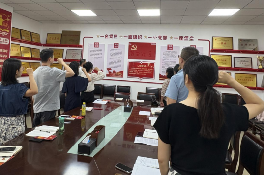 全体党员在董康军同志的领誓下,面向党旗重温入党誓词。铿锵有力的誓言回荡在党员活动室,彰显了党员们永葆初心、勇担使命的坚定信念。